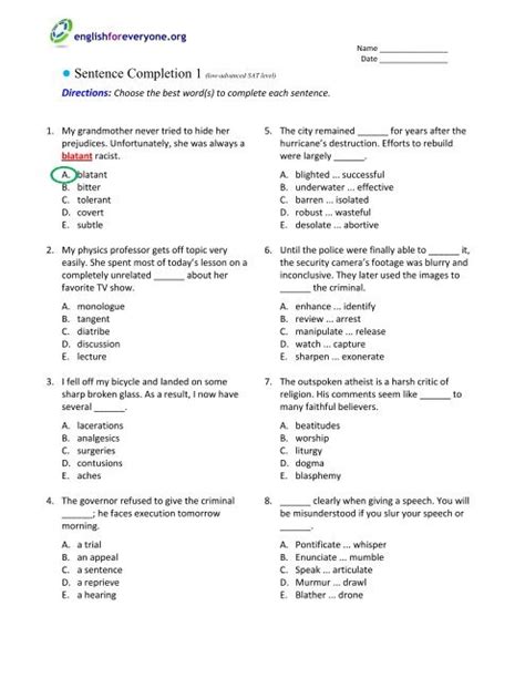 Download Exercise 3 Sentence Completion Answers Reader