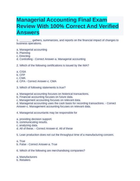 Download Managerial Accounting Final Exam Answers Embry Riddle Reader